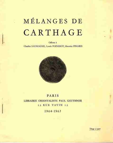 In 4°, pp. da 21 a 42. Brossura editoriale figurata. Qualche fioritura alla prima pagina. Copia in buono stato. Con VII tavole fuori testo. In: Mélanges de Chartage.