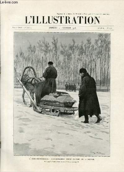 L'ILLUSTRATION JOURNAL UNIVERSEL N° 3232 - Gravures: A Saint-Pétersbourg: l'enterrement d'une victime du 22 janvier par Scott - une séance publique de la conférence de Paris, déposition d'un pêcheur de la flotille de Hulle, dessin de Paul Renouard.