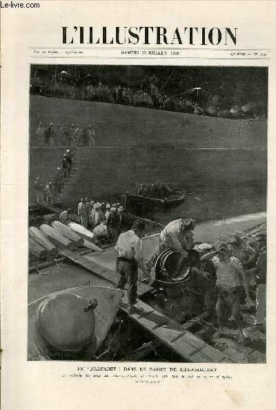 L'ILLUSTRATION JOURNAL UNIVERSEL N° 3256 - Gravures: le "Farfadet" dans le bassin de Sidi-Abdallah - les fetes franco-anglaises de Brest - un 14 juillet franco-anglais à Brest par Scott - le roi des Belges Léopold II se promenant à cheval à Laeken.