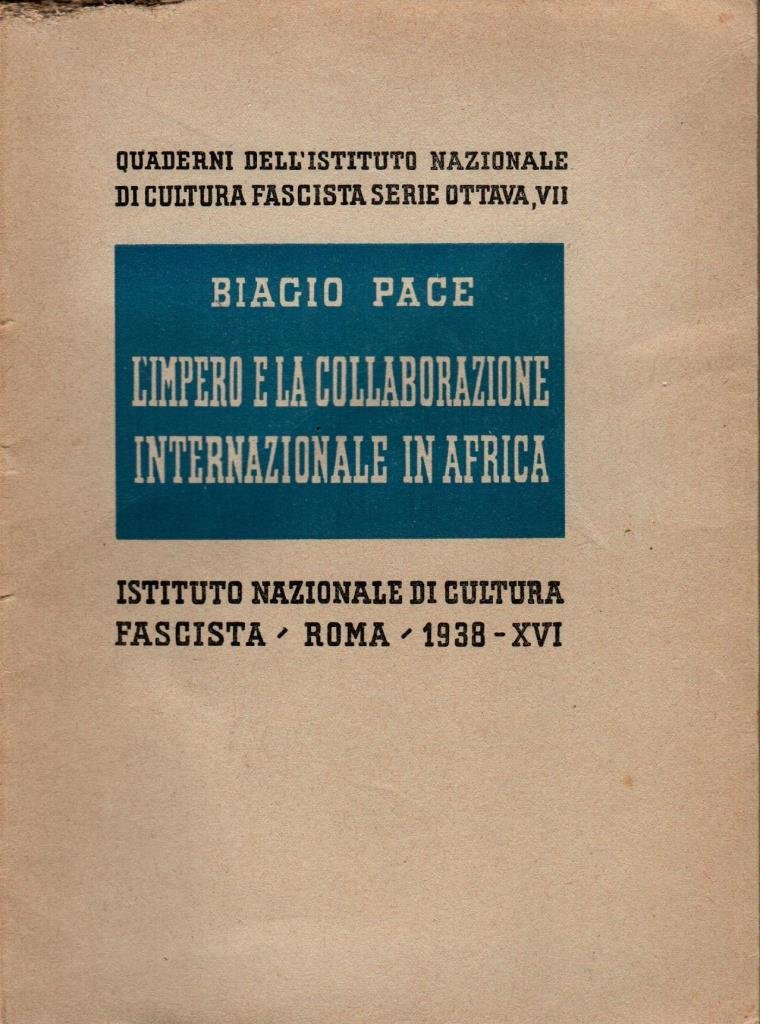 "L'Impero e la collaborazione internazionale in Africa", edizione 1938, formato 16 x 22,5.