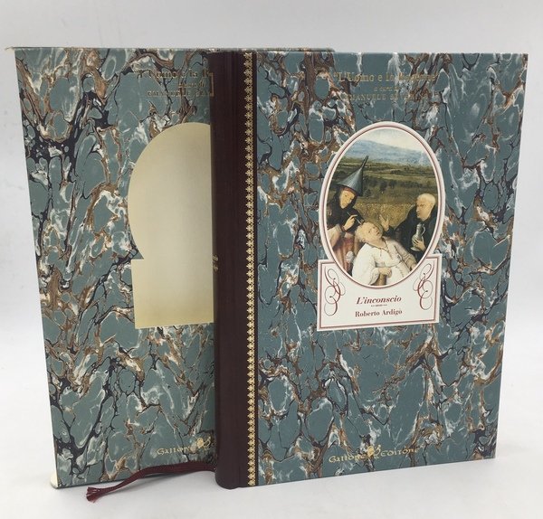 In-8° (cm. 24,5x16,8), cm.17,5x24,5, pp.XLIII, 155, con 1 tavola a col. (da "L'estrazione della pietra della follia" di H. Bosch). Mz. similpelle (skyvertex?), tit. e fregi oro, piatti, sguardie e cofanetto in "carte francesi tirate a mano da Enrico Beretta", a marmorizzazione policroma. Nastrino segnalibro. Taglio sup. oro. cofanetto fustellato a rivelare l'ill. a col. del piatto appl. al piatto ant. Nota bio-bibliogr. ARDIGÒ, spretato nel 1871, promosse il metodo positivo sperimentale della psicologia e della pedagogia, formulò una complessa teoria della percezione e del pensiero e dell'evoluzione. Es. come nuovo. Costava Lit. 130.000. Edizione esclusiva limitata in 800 copie, il nostro è il. n. 795.