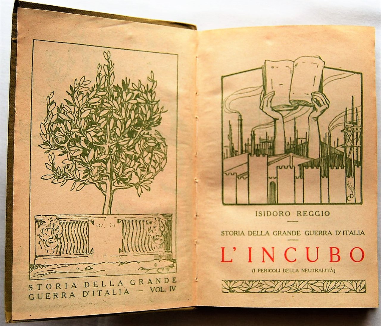Istituto Editoriale Italiano, . In-16, tela editoriale, pp. 196, con tavole in bianco e nero fuori testo fuori testo. Volume IV della Storia della Grande Guerra d'Italia. In buono stato.