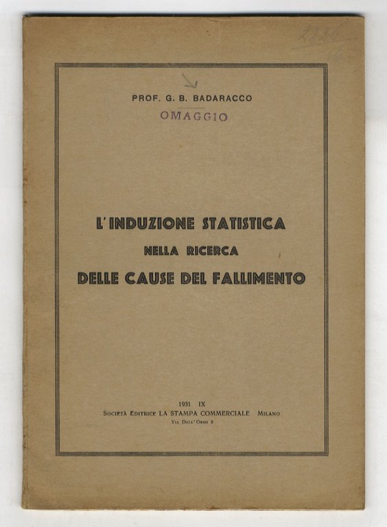 Milano, Società Editrice La Stampa Commerciale, 1931, in-8, br. editoriale, pp. 62. Con tabelle e grafici, anche ripiegati.