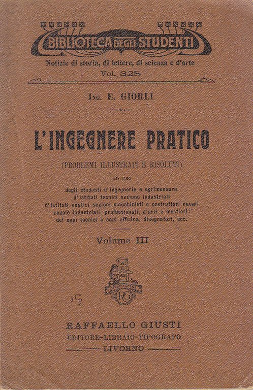 L'Ingegnere Pratico volume III di Giorli 1915 Giusti Libro Manuale problemi
