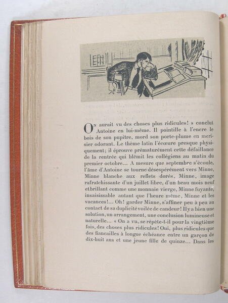 Henri Jonquières et Cie, éditeur, N° 3 de collection "Les beaux romans" 1922. in/8, reliure en plein maroquin rouge, dos à 4 nerfs, dos et couvertures conservées, doré sur tête, 251 pages. Illustré de trente-cinq compositions de Chas. Laborde. Exemplaire numéroté sur papier de rives.