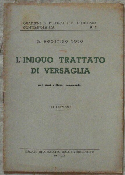 L'INIQUO TRATTATO DI VERSAGLIA NEI SUOI RIFLESSI ECONOMICI.