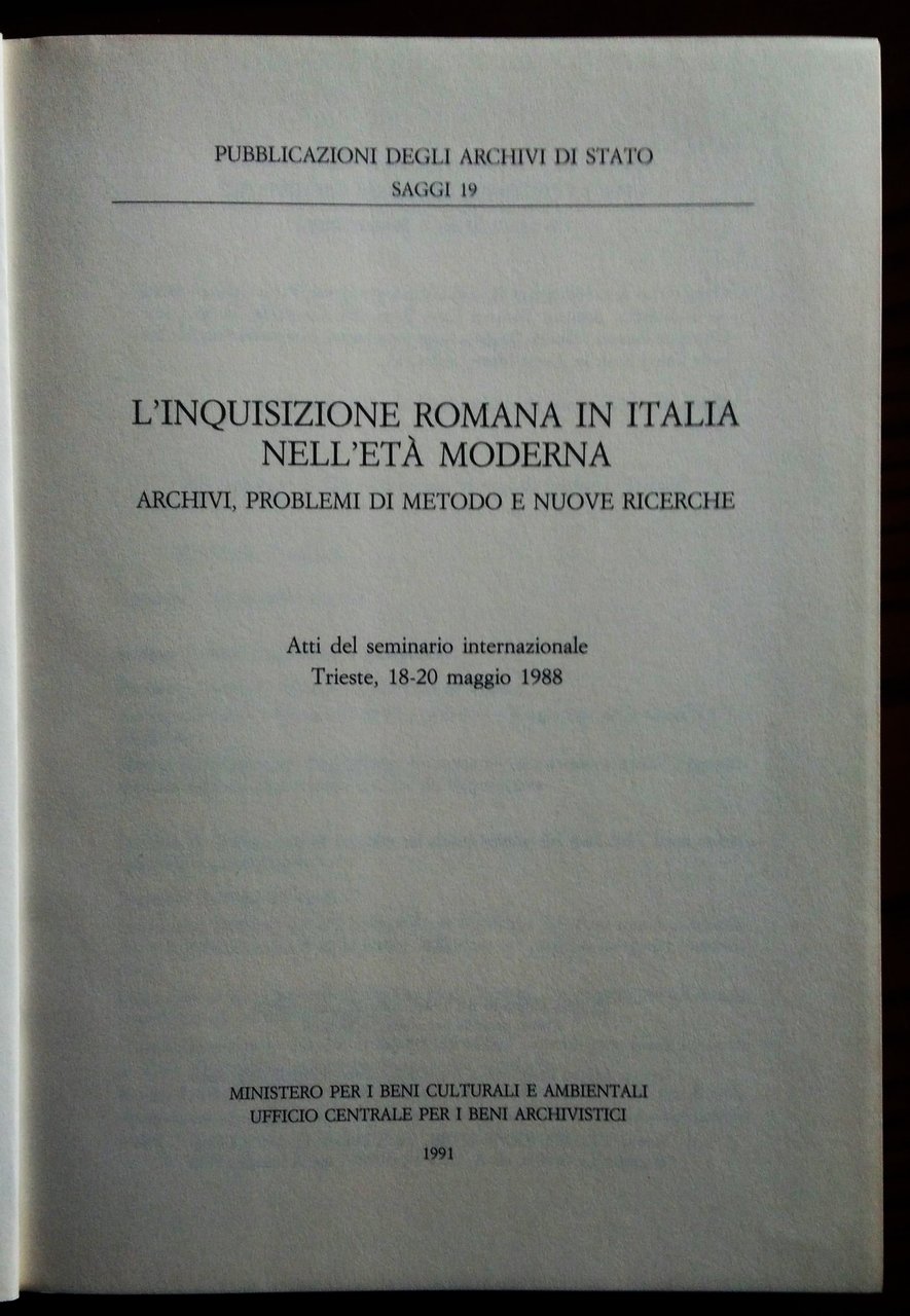 L'inquisizione romana in Italia nell'età moderna. Archivi, problemi di metodo e nuove ricerche. Atti del seminario internazionale, Trieste, 18-20 maggio 1988.