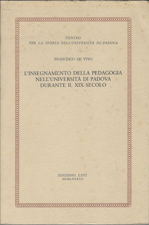 L'INSEGNAMENTO DELLA PEDAGOGIA NELL'UNIVERSITA' DI PADOVA DURANTE IL XIX SECOLO