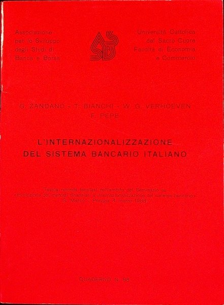 L'internazionalizzazione del sistema bancario italiano: tavola rotonda tenutasi nell'ambito del seminario su ”Evoluzione dei mercati finanziari e internazionalizzazione del sistema bancario”: S. Marco-Perugia, 4 marzo 1988.