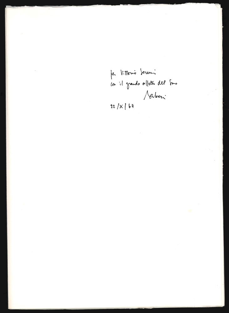 LIBROEdizione originale.Esemplare numero 30 dei soli 50 siglati in numeri arabi; in ottime condizioni, completo dell’astuccio.Tiratura di 60 esemplari numerati a matita (1-50 e I-X) per il quarto libro del poeta, illustrato da otto acqueforti di Steffanoni. Il titolo deriva da Petrarca (Rvf 58, 8), citato in esergo. La suite «L’intoppo» è la prima uscita dopo «Le case della Vetra», a sua volta prima raccolta cospicua a radunare le liriche raboniane 1955-1965; sarà poi ricompresa nella seconda raccolta poetica, pubblicata poco meno di dieci anni dopo nello «Specchio» («Cadenza d’inganno», 1975).