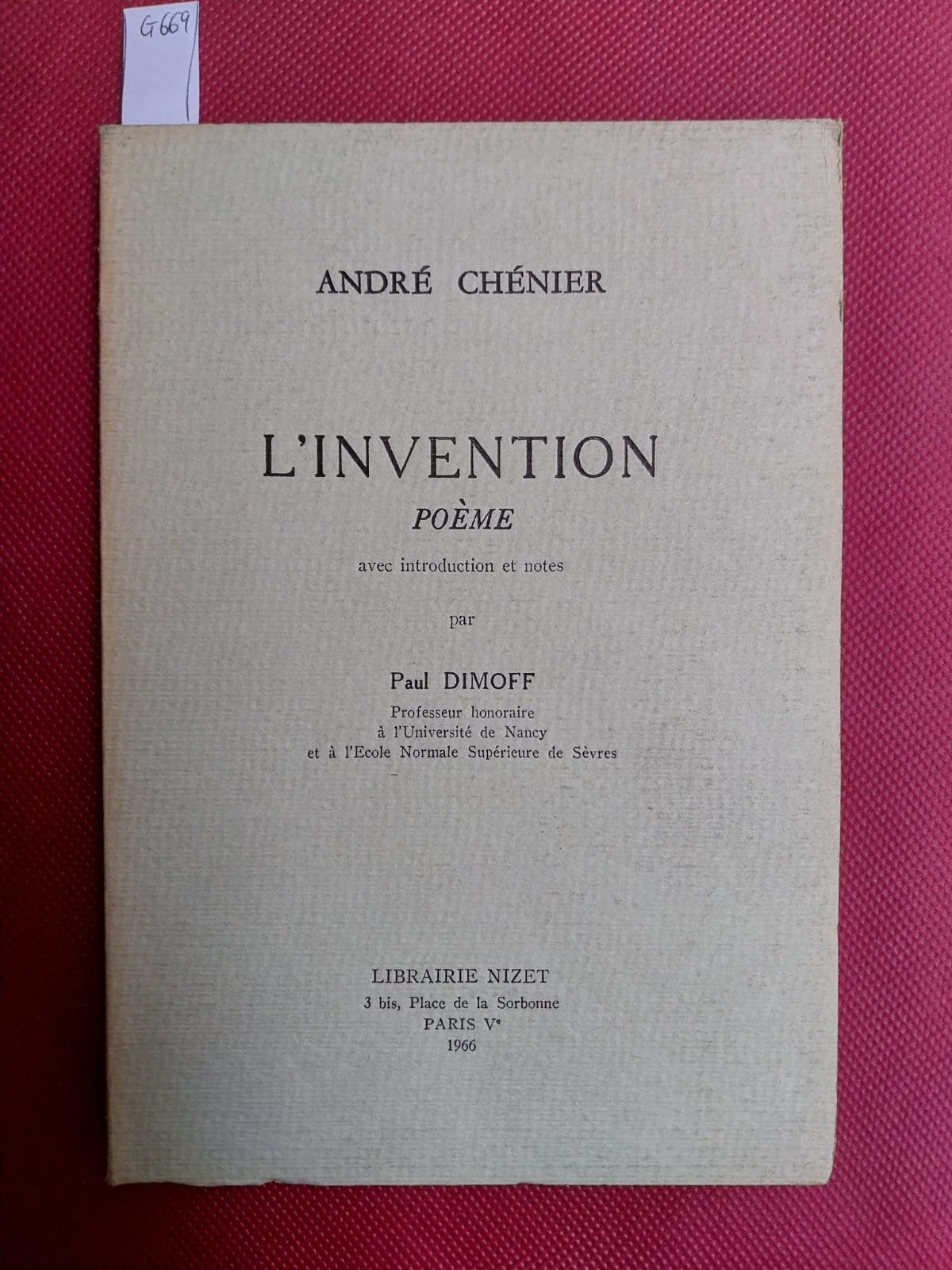 L'invention. Poème avec introduction et notes par Paul Dimoff