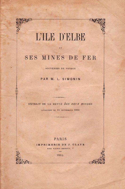 L'Isle d'Elbe et ses mines de fer. Souvenir de voyage (Extrait de la Revue des Deux Mondes livraison du 15 Septembre 1864).