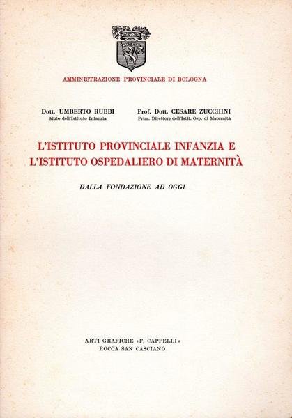 L'istituto provinciale infanzia e l'istituto ospedaliero di maternità, edizione giugno 1960, pp. 32, formato 17 x 24.<BR>Copertina morbida di colore crema con titoli in nero e rosso al piatto anteriore. All'interno presenti numerose tavole fotografiche in b/n. <BR>Ottime condizioni.
