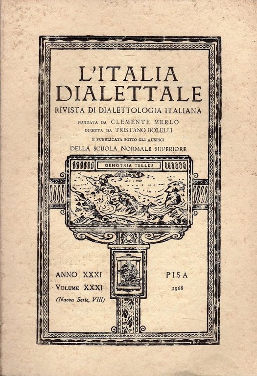 1968. Rivista fondata da Clemente Merlo e diretta da Tristano Bolelli pubblica sotto gli auspici della scuola Normale di Pisa. Copertina editoriale in brossura morbida. Volume XXXI.