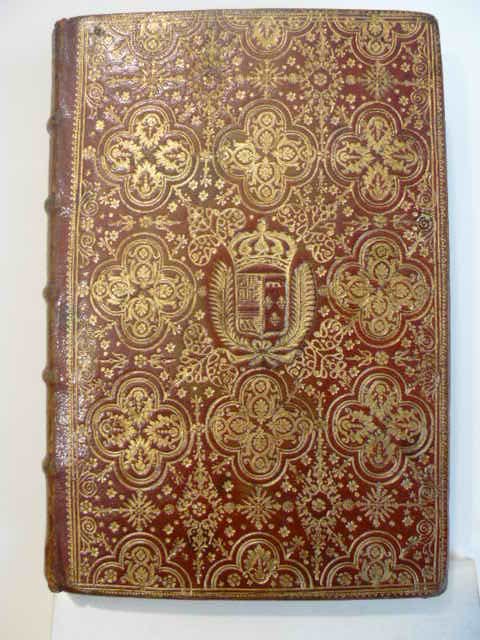 In-8°(cm 21 x 13,5), pp. 654, Antiporta inciso in rame con ritratto entro medaglione ovale della duchessa di Borgogna sorretto da quattro putti alati, abrasione nella parte bassa dell'incisione, 4 incisioni f.t. Bella legatura in marocchino rosso su piatti in cartone decorata ai piccoli ferri. Dorso a cinque nervi con ricchi fregi e decori floreali au pointillé, titolo in oro al dorso. Ai piatti dentelle e ricco decoro ai piccoli ferri con quadrifogli riempiti di motivi floreali. Al centro di ogni piatto tra due palme lo stemma con le armi di Louise Elisabeth d'Orleans, quarta figlia del reggente, sposa di Louigi I, re di Spagna. Dentelle interna, tagli dorati. Belle carte di guardia con decori di fiori e foglie in oro e a colori