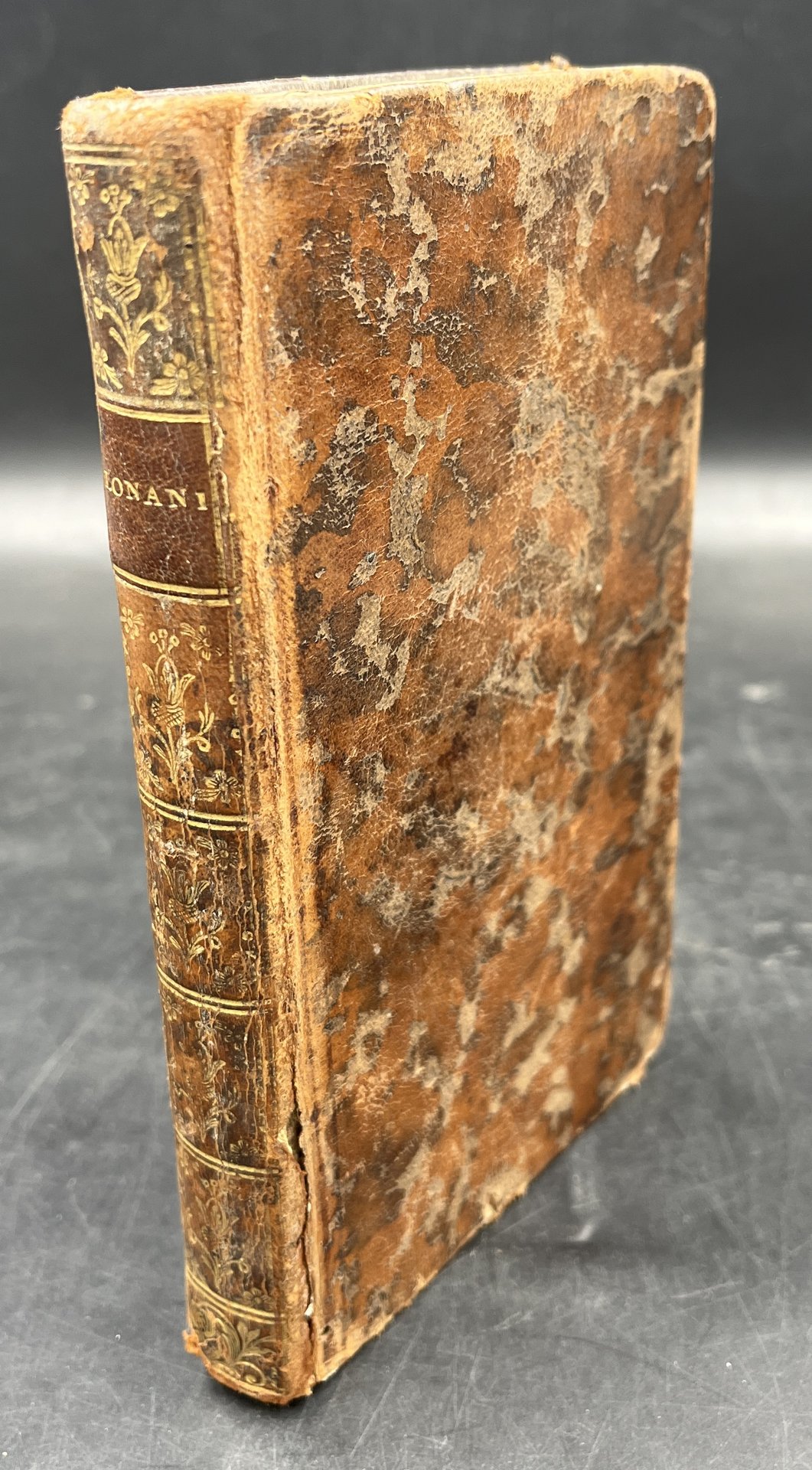 In-12° (cm. 16,5x9,6), pp. XXII, (2), 264. Bella legatura in piena pelle maculata coeva, ti. e ricchi fregi al ds., sguardie in carta decorata + due sguardie bianche. Una delle sguardie bianche manca di un angolo che forserecava la firma del possessore; ma es. assolutamete completo di occhiello front. e testo. Tagli marmor. Insignif. mende a 1 cuffia e angoli; 3 buchetti di tarlo alla cern. presso una cuffia, ma es. bello e solido; lieve traccia di gora a qc. marg., se no interno freschissimo. Celebre trattato uscito in latino nel 1760, poi tradotto in francese e dall'Autore ampiamente integrato nelle succ. ed.; uscì in ital. nel 1771. TISSOT, medico svizzero calvinista "illuminato" era (forse) scusabile per aver avallato come scienza le istanze degli oscurantisti religiosi.