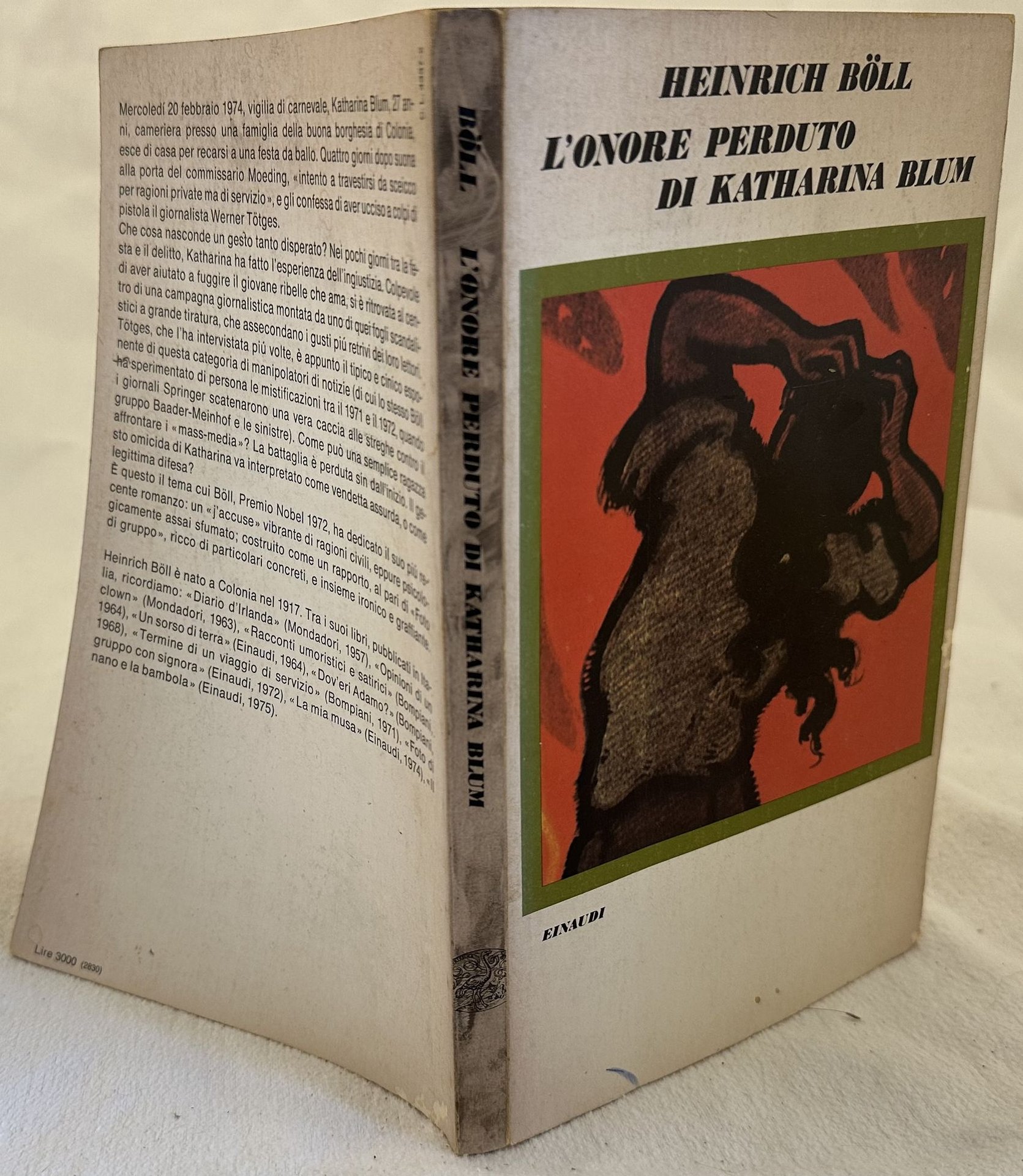 Edizione italiana del 1975 di questo romanzo di Heinrich Boll. Traduzione di Italo Alighiero Chiusano. In ottime condizioni. Copertina editoriale in ottime condizioni generali con lievi usure ai margini e dorso. Legatura in buone condizioni. Pagine in ottime condizioni. In 8. cm 22x13,5. Pp. 144+(2).Italian edition of 1975 of this novel by Heinrich Boll. Translation by Italo Alighiero Chiusano. In very good conditions. Editorial cover in very good conditions little worn in the extremities. Binding in good condition. Pages in very good conditions. In 8. cm 22x13,5. Pp. 144+(2).