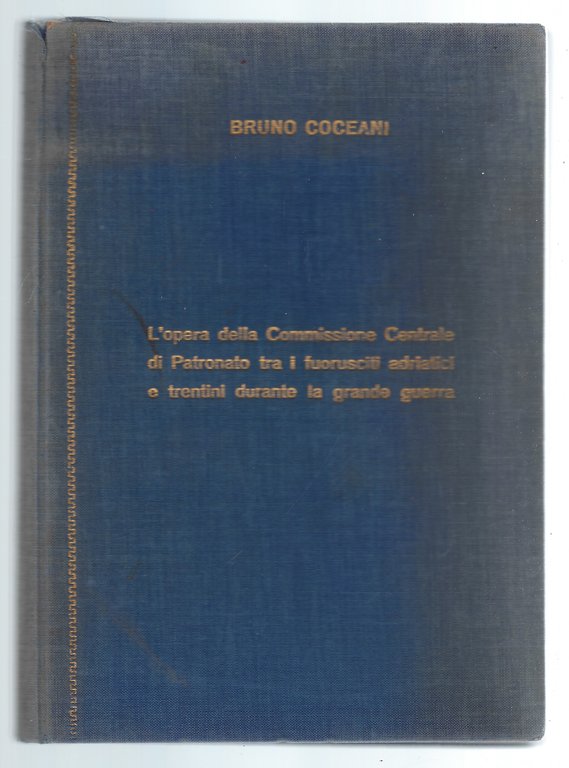Rilegatura artigianale in tela blu con titoli in oro al piatto anteriore.