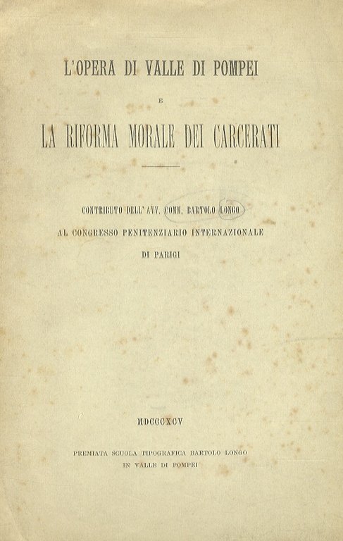 L'opera di Valle di Pompei e la riforma morale dei carcerati. Contributo al Congresso Penitenziario Internazionale di Parigi.