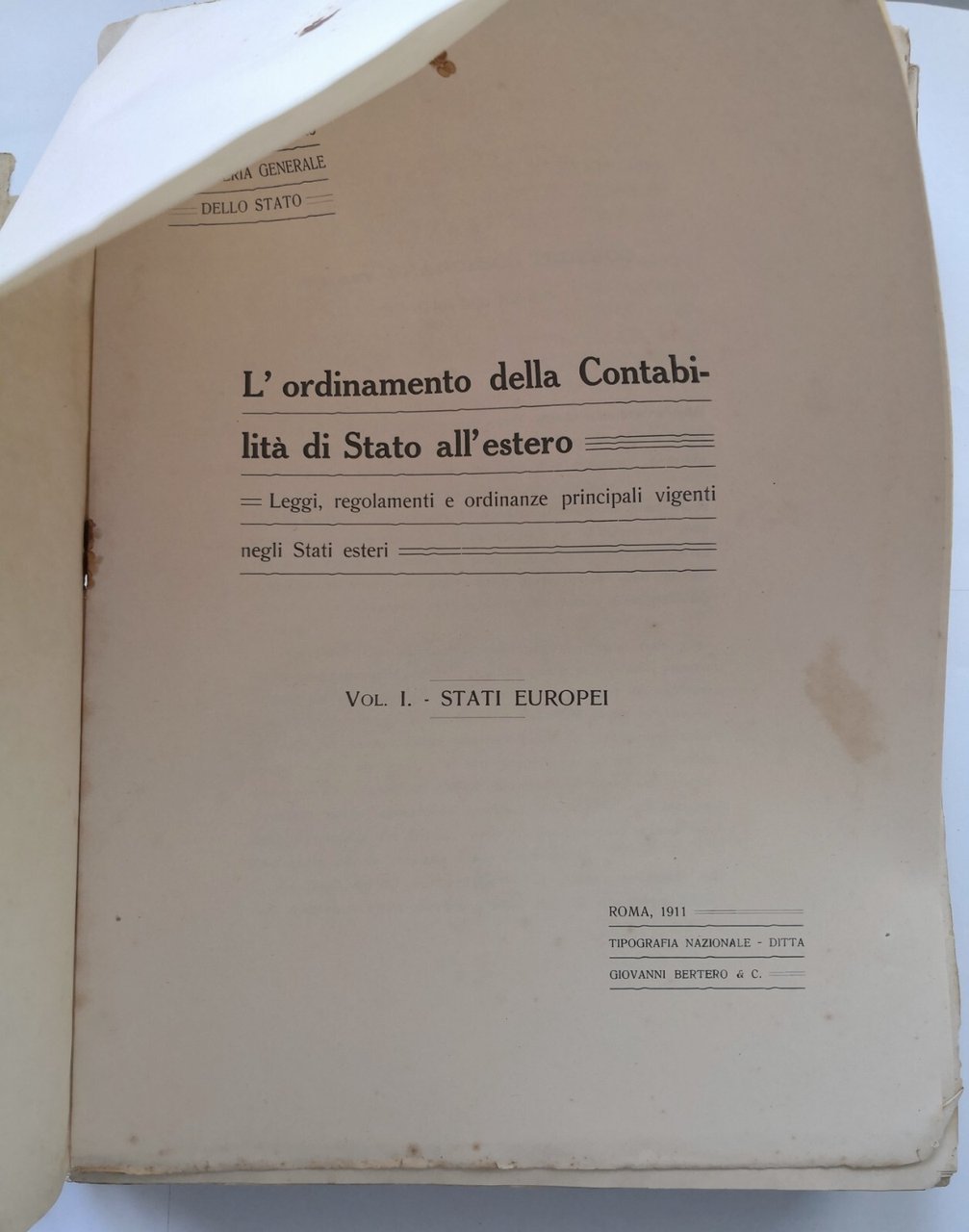 Roma Tipografia Nazionale, Ditta Giovanni Bertero & C., 1911. Ministero del tesoro, ragioneria generale dello stato.