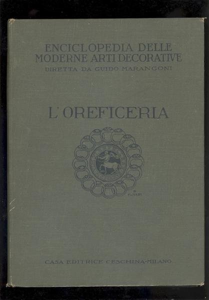 IN 4°, pp.115 + TAVV.100 in b/n.f.t., INDICI. COPERTINA EDITORIALE IN PIENA TELA RIGIDA CON ILLUSTRAZIONE E TITOLO AL 1°PIATTO RIPORTATO ANCHE AL DORSO. NUMEROSE ILLUSTRAZIONI in b/n. INTERCALATE NEL TESTO.BELLE TAVV. CHE ILLUSTRANO MANUFATTI IN ARGENTO, MEDAGLIE, SCULTURE, ECC. DI GRANDI ARTISTI TRA CUI CITIAMO : LIBERO ANDREOTTI, LEONARDO BISTOLFI, DUILIO CAMBELLOTTI, FORTUNATO DEPERO, VINCENZO GEMITO, ANTONIO MARAINI, AURELIO MISTRUZZI, PUBLIO MORBIDUCCI, GIO PONTI, GIUSEPPE ROMAGNOLI, ROMANO ROMANELLI, G. SAMBONET, SILVIO SILVA, VITTORIO ZECCHINI, ED ALTRI. VECCHIO TIMBRO DI APPARTENENZA ALL'OCCHIETTO, OTTIMA CONSERVAZIONE GENERALE DI QUESTA BELLA MONOGRAFIA SULL'OREFICERIA, CHE RAPPRESENTA IL VOL. IV DELL'ENCICLOPEDIA DELLE MODERNE ARTI DECORATIVE.<BR> ID 5171
