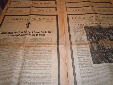 L'OSSERVATORE ROMANO - ANNO 1939 - 9 NUMERI DEDICATI ALLA MORTE E ALLE CELEBRAZIONI FUNEBRI DI PIO XI - DAL 11 FEBBRAIO AL 20-21 FEBBRAIO 1939