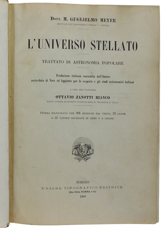 L'UNIVERSO STELLATO. Trattato di astronomia popolare.
