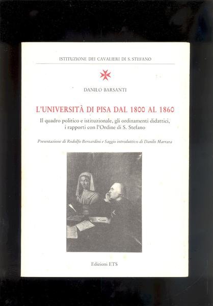 IN 8°, pp. XIV, 508, COPERTINA EDITORIALE ILLUSTRATA CON TITOLO. L'UNIVERSITA' DI<BR>PISA NEI PRIMI 60 ANNI DELL'OTTOCENTO SUBI' PIU' CAMBIAMENTI NELL'ORGANIZZAZIONE DEGLI STUDI DI QUANTI SE NE FOSSERO VERIFICATI NEGLI ULTIMI DUE SECOLI E MEZZO.<BR>FU AL TEMPO DI LEOPOLDO II E SOTTO I PROVVEDITORATI DI GAETANO GIORGINI E DI GIULIO BONINSEGNI, CHE L'UNIVERSITA' DI PISA RAGGIUNSE IL SUO MASSIMO SPLENDORE CON LA FONDAZIONE DI SEI FACOLTA' E LA PARTECIPAZIONE DIRETTA ALLE PRIME EROICHE VICENDE DEL RISORGIMENTO CULMINATE NEL SACRIFICIO DI CURTATONE E MONTANARA. PRESENTAZIONE DI RODOLFO BERNARDINI, SAGGIO INTRODUTTIVO DI DANILO MARRARA. OPERA FACENTE PARTE DELLE PUBBLICAZIONI DELLA COLLANA DELLA ISTITUZIONE DEI CAVALIERI DI S. STEFANO. PERFETTA CONSERVAZIONE. ID 2934<BR>