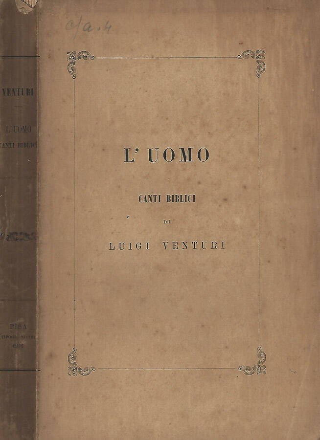 Brossura filo refe, copertina in carta naturale, esterno segnato da velature di polvere e piccoli aloni di umido, marcati al margine e dorso e trasmessi ai preliminari e parte dei fogli intonsi, ?vol. da sfogliare con cura, per contrastare iniziale usura meccanica delle cerniere interne e cuciture, ombre di muffe ai tagli. N. pag. 274.