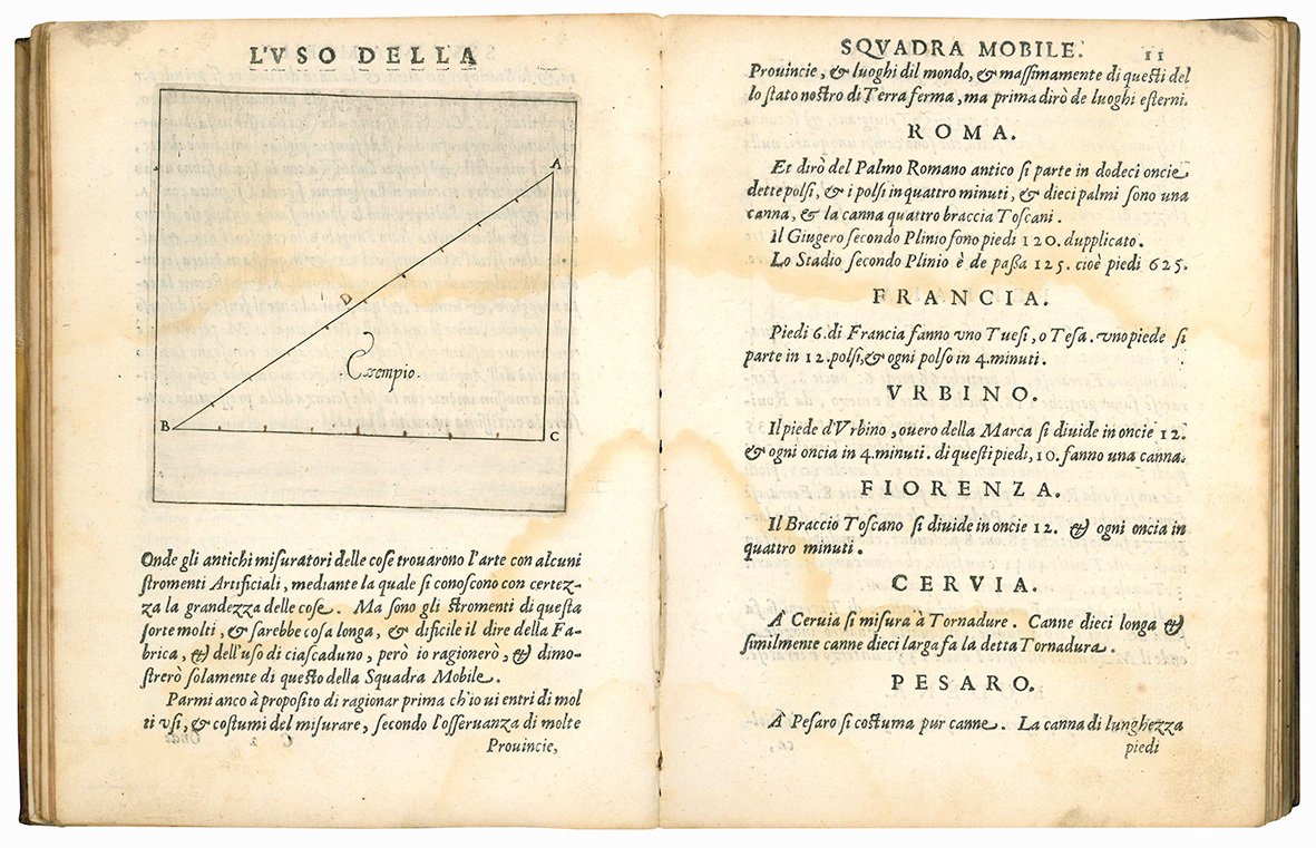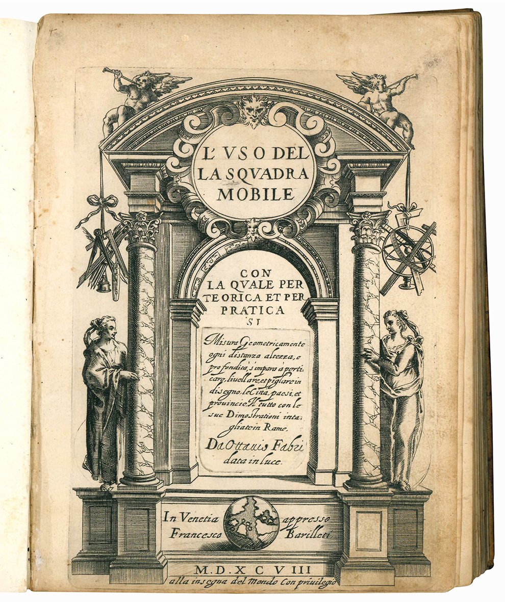 L'uso della squadra mobile con la quale per teorica et per pratica si misura geometricamente ogni distanza altezza, e profondità, s'impara a perticare, liuellare, et piglare [!] in disegno, le città, paesi, et provincie. Il tutto con le sue dimostrationi intagliate in rame. Da Ottavio Fabri data in luce