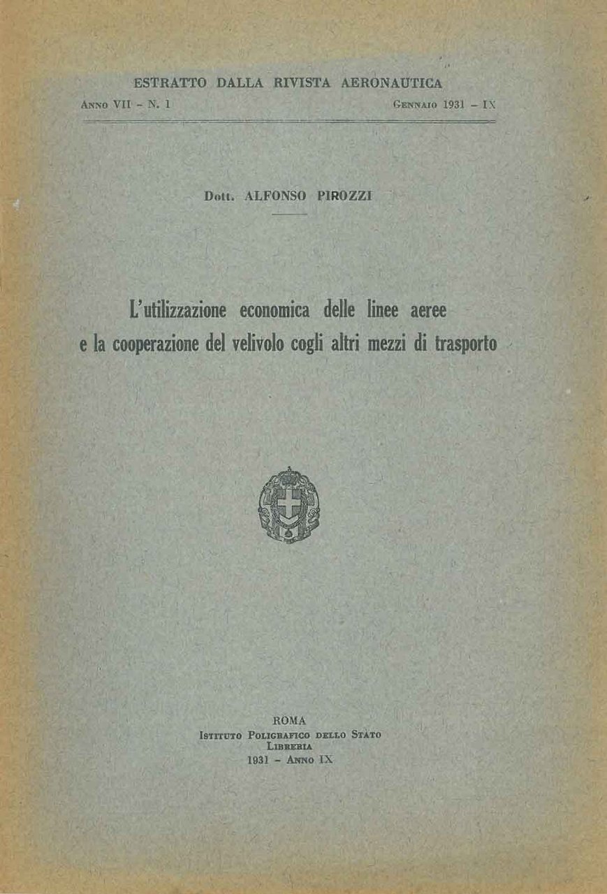 L' utilizzazione economica delle linee aeree e la cooperazione del velivolo cogli altri mezzi di trasporto