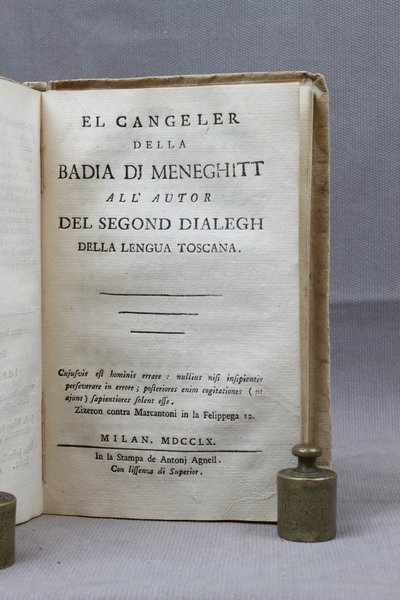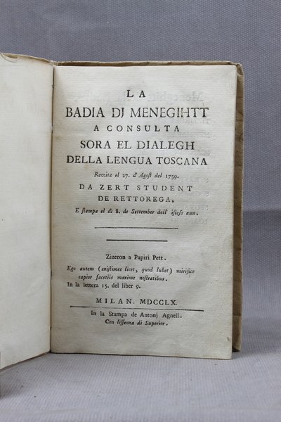 La Badia dj Meneghitt a consulta sora el dialegh della lengua toscana rezzitae el d? 27. d'agost del 1759 da zert student de rettorega.