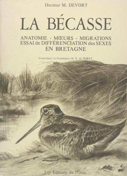 Les Éditions de l’Orée, 1981. Grand In/8 broché, couverture et frontispice de Xavier de Poret, 135 pages. Seconde édition. Anatomie (caractères liés à l’âge et au sexe). Moeurs (le biotope, nutrition, reproduction dynamique des populations). Les migrations (sédentaires et migratrices, influence de l’âge et du sexe sur le comportement migratoire.). Essai de différenciation des sexes en Bretagne. Préface de Charles Fadat. Avec des figures en noir, des graphiques et des tableaux dans le texte. Kaps, p. 72.