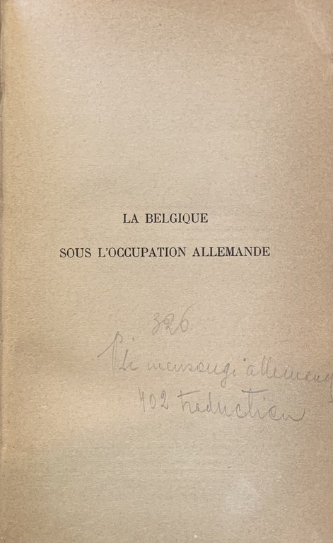 LA BELGIQUE SOUS L' OCCUPATION ALLEMANDE. MEMOIRES DU MINISTRE D' AMERIQUE A BRUXELLES