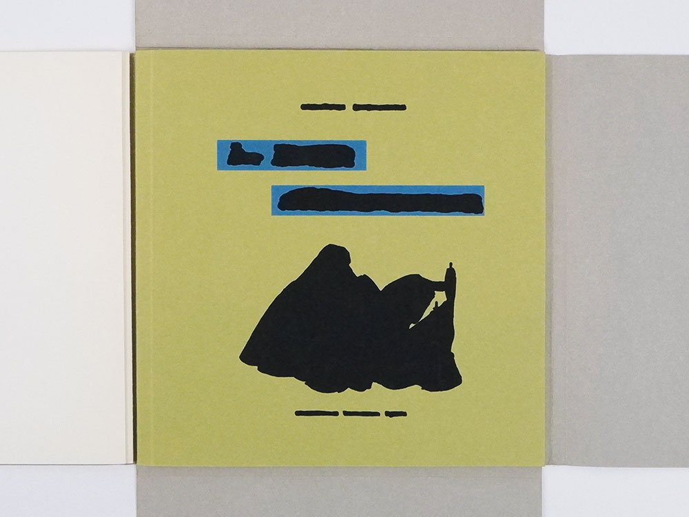 - contiene due bifoli sciolti in carta bianca con frontespizio, sottoscrizione tipografica e tiratura, a precedere l’opera, ovvero il libro vero e proprio: brossura in cartoncino semirigido verde chiaro, piatto anteriore cancellato in nero e azzurro, pp. [28] in carta di alta grammatura, stampate a colori.