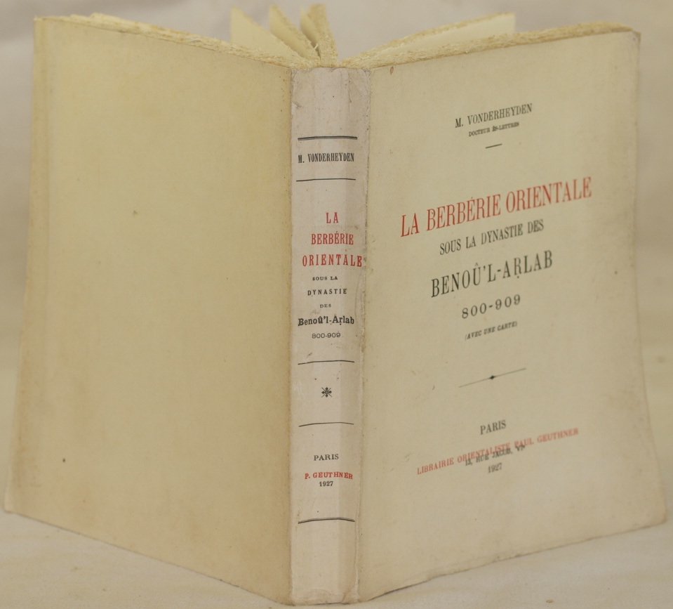 In 8. Dim. 24x19 cm. Pp. 344. Edizione del 1927 di questa interessante monografia sulla Barberia Orientale scritto da Vonderheyden Questo studio è incentrato sulla prima dinastia araba degli arlabidi che governarono l'Ifriqiya durante il IX secolo era cristiana (800-909). Sotto questa dinastia araba si sviluppò la prestigiosa civiltà kairouanaise. Alla fine del volume tavola genealogica e una mappa. In buone condizioni. Copertina editoriale in buone condizioni generali con lievi usure ai margini e dorso. Legatura in buone condizioni. All'interno le pagine si presentano in ottime condizioni con rare fioriture. Edition of 1927 of thsi interesting monography abour eastern Barberia written by Vonderheyden. This study focuses on the first arabian dinasty of arlabides which governed Ifriqiya during the IX century christian age (800-909). Under this arabian dinasty developed the famous civilisation kairouanaise. At the end of the volume genealogical chart and a map. In good conditions. Editorial cover in very good general conditions slightly worn in the edges and spine. Binding in very good conditions. Inside pages are in very good conditions with occasional foxings.