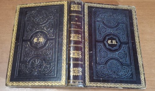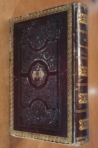 Splendida copertina in tutta pelle con fregi a sbalzo, cornice e iniziali dorate ai piatti e titoli e fregi dorati al dorso, tagli rossi. Dimensioni: 10,5 x 15,5 cm. stato di conservazione: molto buono (fioriture)