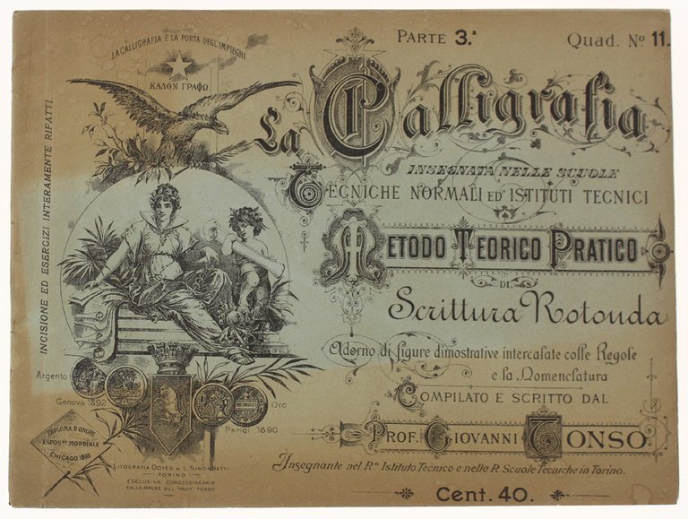 LA CALLIGRAFIA INSEGNATA NELLE SCUOLE TECNICHE NORMALI ED ISTITUTI TECNICI. Metodo Teorico Pratico di Scrittura Rotonda. Parte 3a - Quad. N. 11