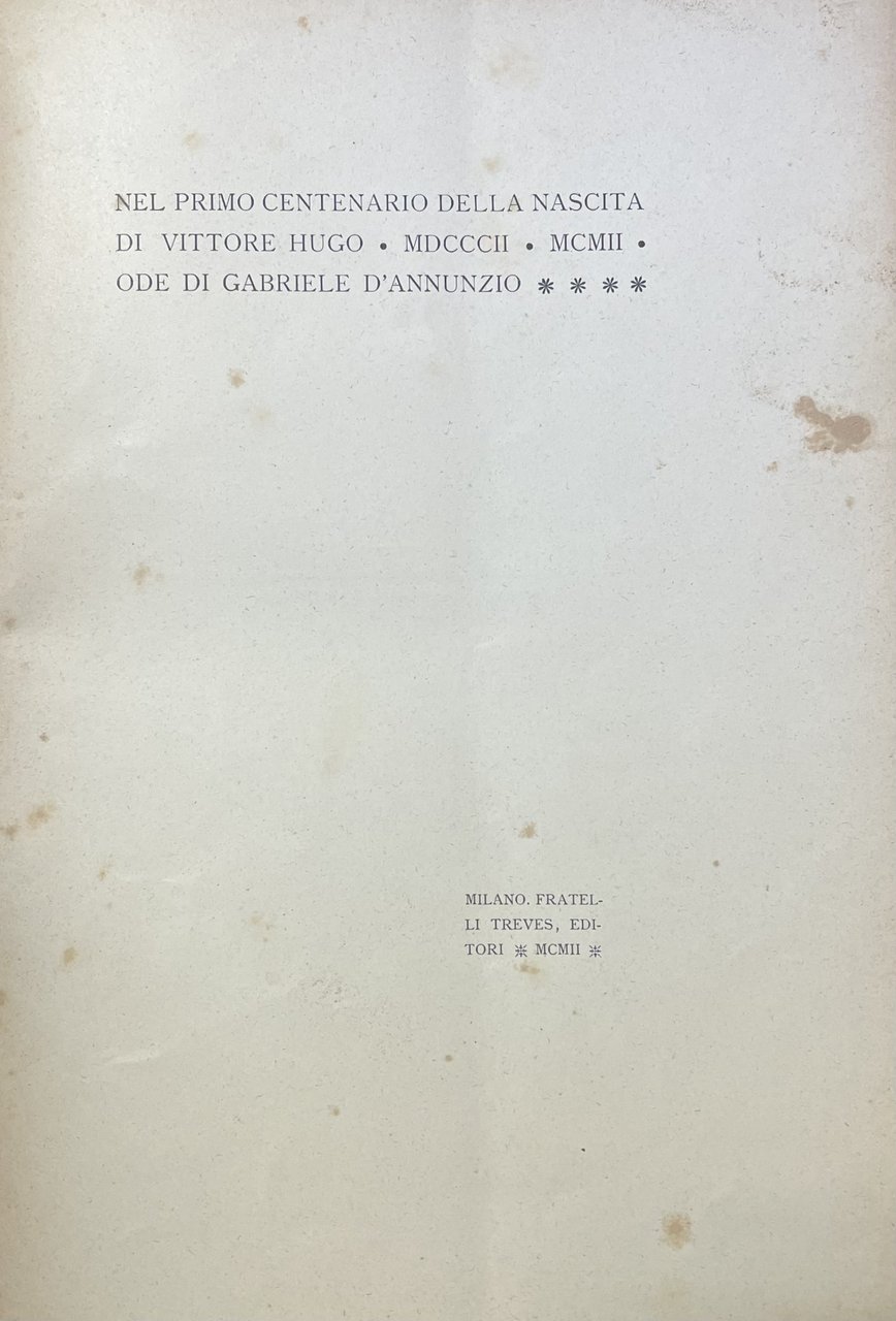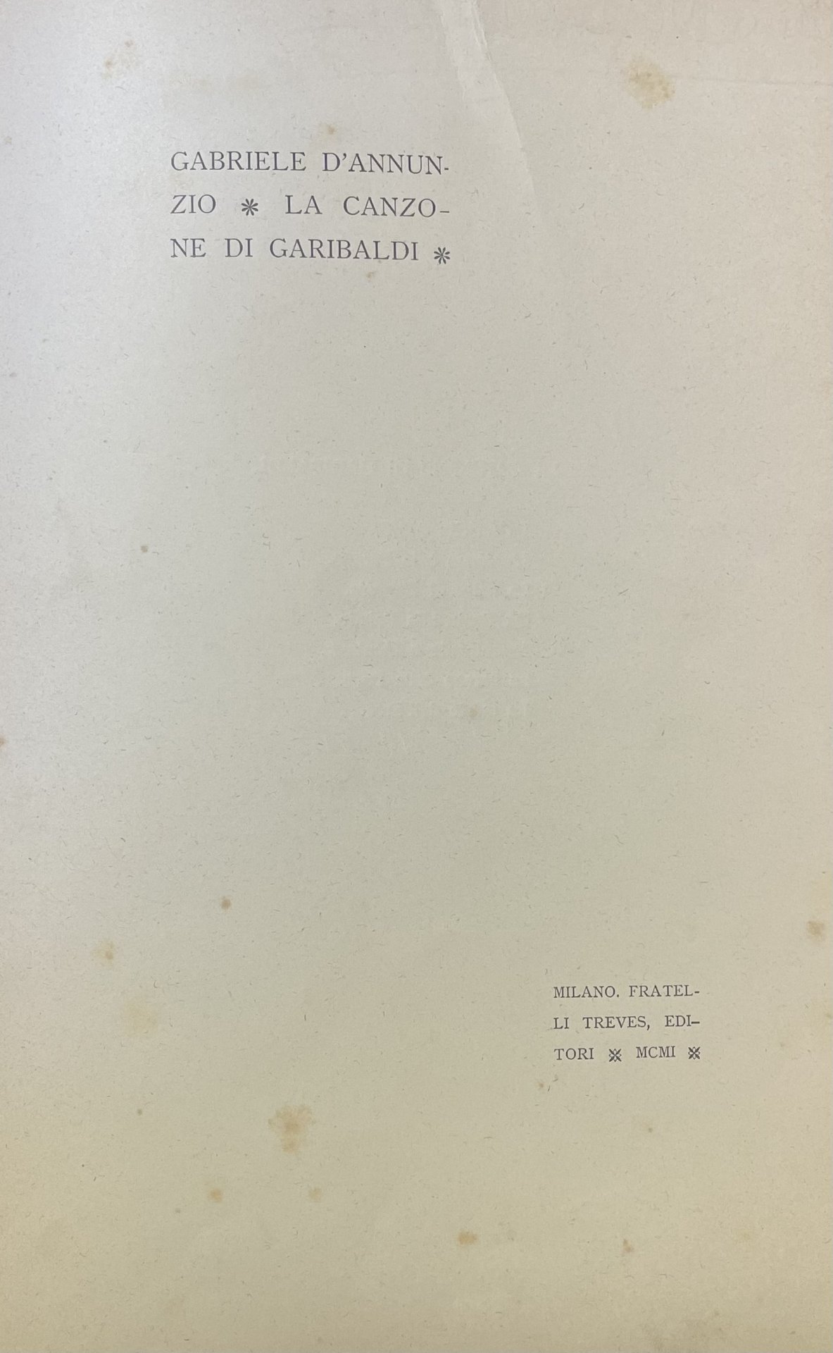 LA CANZONE DI GARIBALDI (seguito da) NEL PRIMO CENTENARIO DELLA NASCITA DI VITTORE HUGO