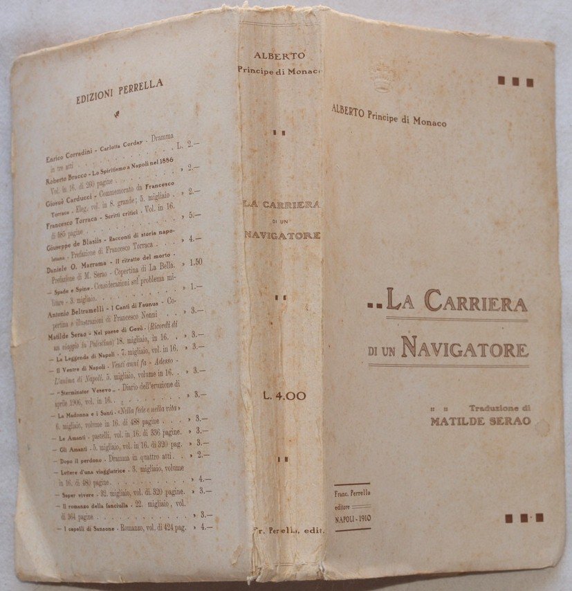 In 8. Dim. 20x13,5 cm. Pp. XVI+388+(4). Edizione del 1910 di questa interessante opera di Alberto Principe di Monaco (1848-1922). L'opera descrive un viaggio in nave a bordo della nave "Hirondelle". Il Principe fu ideatore del museo Oceanografico del Principato di Monaco. Brossura editoriale originale. In buone condizioni. Copertina editoriale in buone condizioni generali con lievi usure ai margini e dorso. Legatura in buone condizioni. All'interno le pagine si presentano in buone condizioni con rare fioriture. Edition of 1910 of this interesting work by Alberto Principe di Monaco (1848-1922). The work describes a voyage in the ship "Hirondelle". The Prince created the Ocena museum of the Principato di Monaco. Editorial original cover. In good conditions. Editorial cover in good general conditions slightly worn in the edges and spine. Binding in good conditions. Inside pages are in good conditions with occasional foxings.
