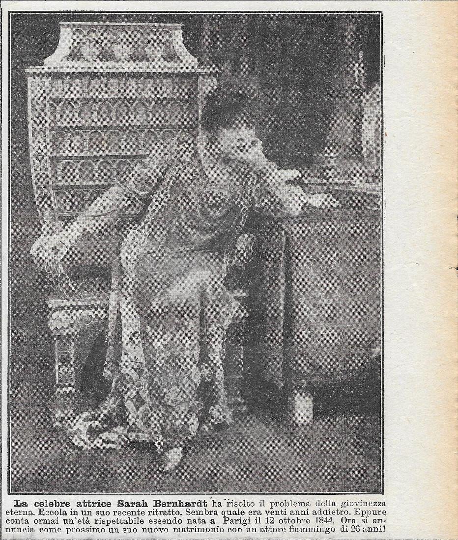 La celebre attrice Sarah Bernhardt. Stampa 1911