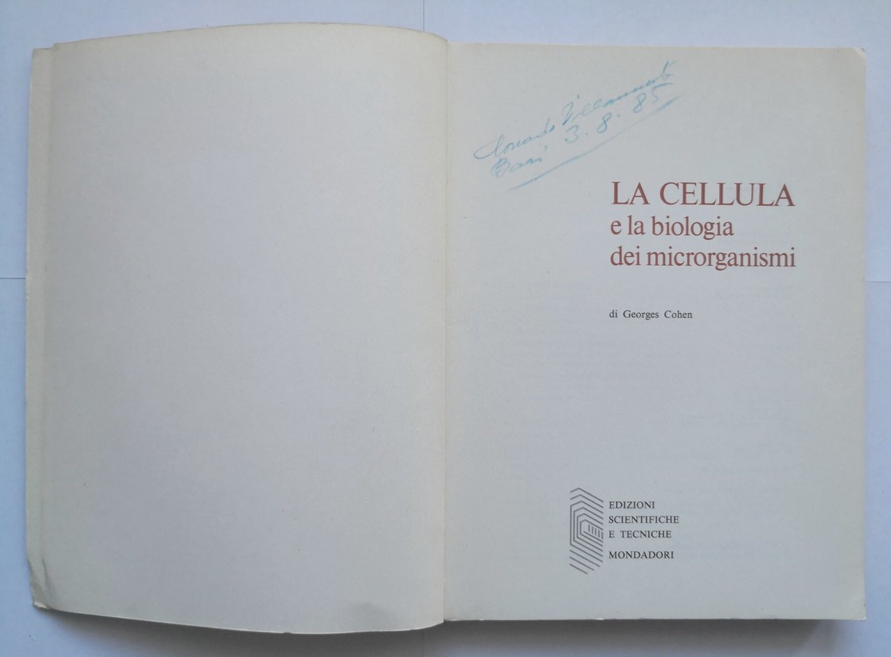 LA CELLULA E LA BIOLOGIA DEI MICRORGANISMI di Georges Cohen.