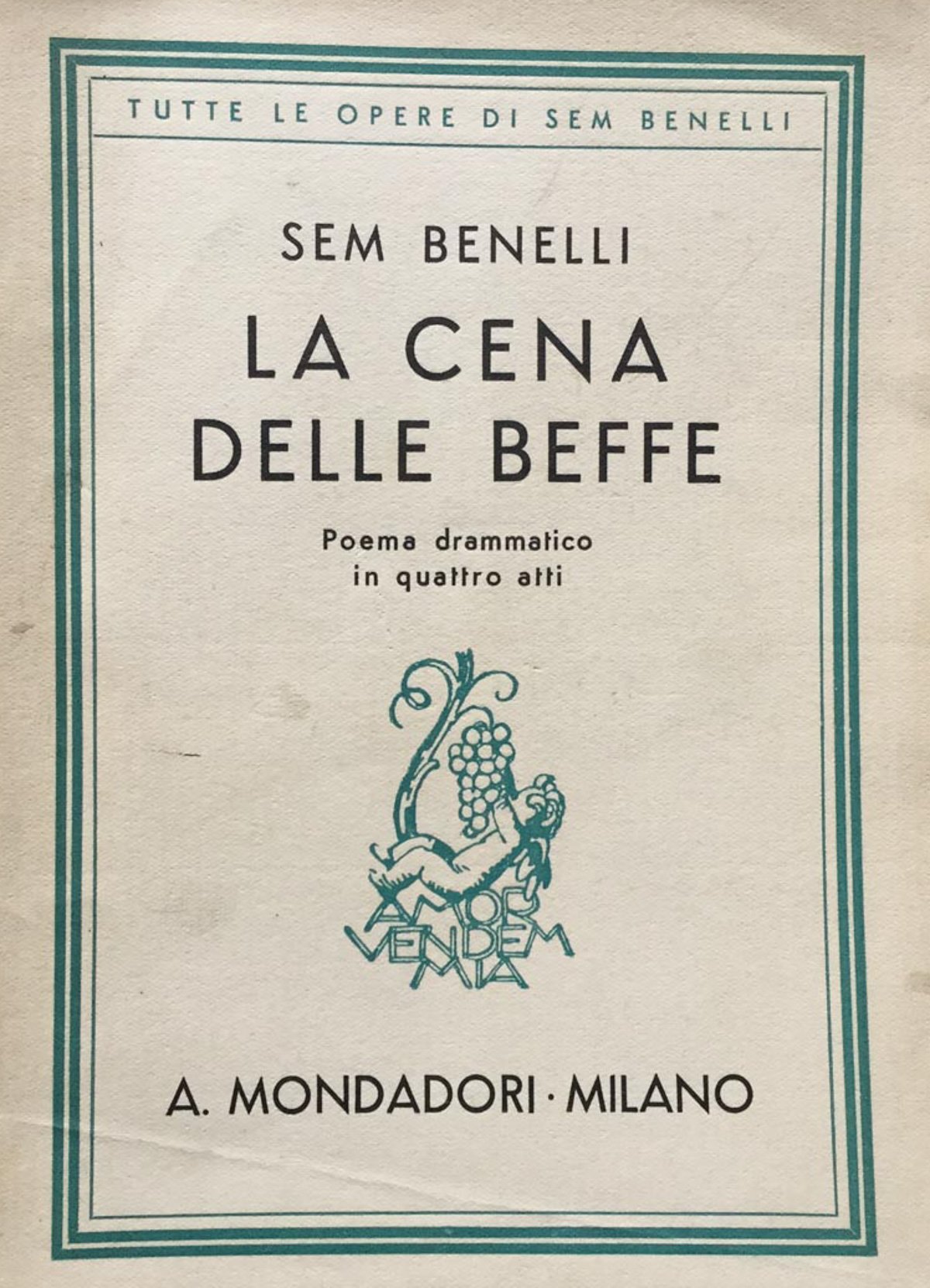 Sem Benelli (Prato, 10 agosto 1877 Zoagli, 18 dicembre 1949) è stato un poeta, scrittore e drammaturgo italiano, autore di testi per il teatro e di sceneggiature per il cinema. Fu anche autore di libretti d'opera. 852 - V In Ottavi (15-23cm ) Buono (Good) Buono