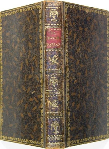 Paris, Egasse Frères, 1807. In/12 reliure plein veau tacheté vert et havanne, dos lisse à petits fers dorés et pièce de titre rouge, roulette dorée sur les plat, doré trois tranches, 19 planches dont un frontispice (Desrais), xij f., 185 p., 1 f. On attribue à ce pamphlétaire de nombreux pseudonymes : Du Laurens, L’auteur du « Compère Matthieu », Brise-Crosses, Laurent d’Henriville, Modeste-Tranquille Xan-Xung, L’abbé de Saint-Albin, J.-B. Dulaurens, G. J. Laurens.Brunet 14153 précise : "les ouvrages de cet écrivain irréligieux et obscène ont été recueillies à Bruxelles en 1823". Le dictionnaire Larousse 19è fait un portrait plus nuancé de l'auteur : Né en 1719, il entre précocement dans les ordres, où fait montre d'un esprit vif mais caustique, qui le met très tôt en butte à son entourage. Le parlement de Paris ayant lancé, en 1761, le célèbre arrêt contre les jésuites, Dulaurens, depuis longtemps leur ennemi, saisit avec empressement l’occasion de se venger en composant contre eux une satire violente, sous le titre de Jésuitiques. Cependant, de crainte des poursuites, il s'enfuit en Hollande puis en Belgique en enfin Allemagne où condamné par sentence en 1767 à une prison perpétuelle et enfermé dans une maison de pauvres prêtres à Mayence. Il termina sa peine au couvent surveillé de Marienborn, où il mourut à l’âge de 74 ans. Le présent titre a été édité la première fois en 1765. Jean et Jérôme, vieux amis et musiciens ambulants, se querellent. L’échauffourée, qui ameute tout Arras, tourne au drame : Jérôme, à l’hôpital, se fait émasculer par un vilain chien. Dès lors, une Chandelle miraculeuse surgit du cerveau de la victime puis va apparaître sur Arras, portée par les mains de Marie. Cette chandelle a le pouvoir de guérir toute personne malade d’excès charnels. (Note : La légende d’une chandelle miraculeuse à Arras est avérée, mais pas pour les mêmes raisons.)