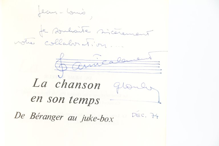 Les Editeurs Français Réunis | Paris 1969 | 13.50 x 20 cm | broché | [ENGLISH DESCRIPTION ON DEMAND] | Edition originale sur papier courant. Envoi autographe daté et signé de Georges Coulonges à un ami prenommé Jean-Louis et accompagné d'un dessin représentant une portée musicale.