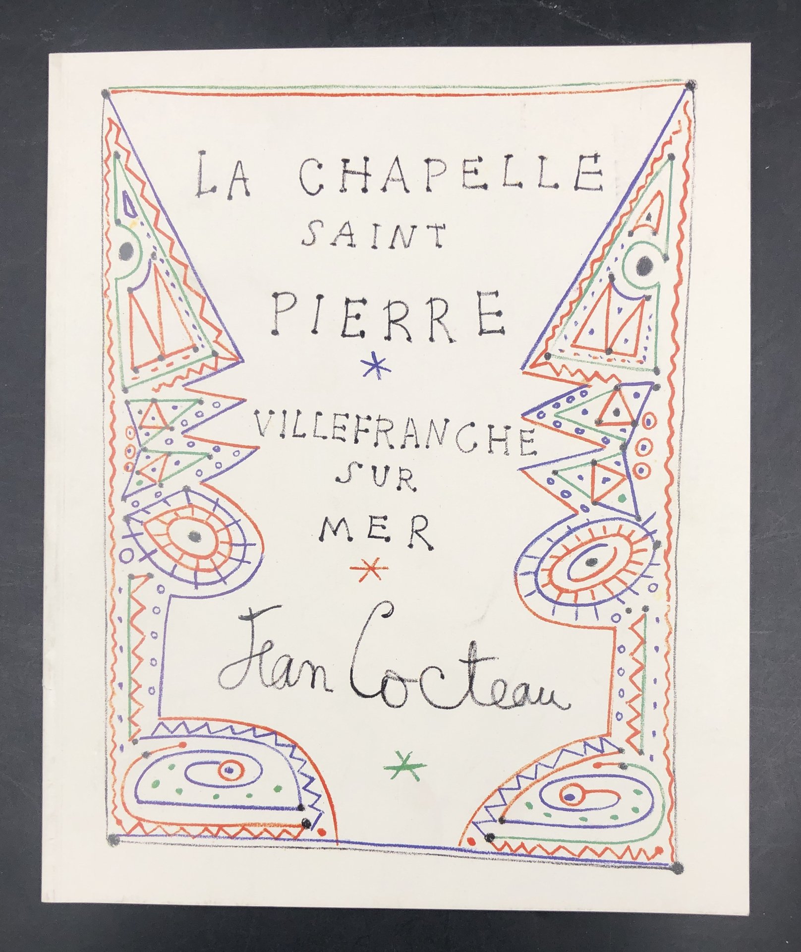 In-8° (cm. 26x21), pp. (40) totalmente ILLUSTRATE con FOTO di G. GASIGLIA e di Paris-Match in bianco e nero, alcune con l'Artista Cocteau all'opera , altre degli interni cn i DISEGNI e le decorazioni di Cocteau. La prima imperesa di questo tipo dell'Artista. "En 1957, Jean Cocteau a conçu et réalisé un décor peint qui recouvre toute la surface intérieure de la chapelle. Il est intervenu aussi sur la façade".