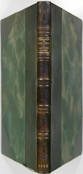Henry Babou éditeur, Paris, 1930. In/8 (23 x 14 cm) reliure signée Flammarion en demi-chagrin à coins vert, dos à nerfs à caissons à froid et titres dorés, doré sur tête, couvertures et dos conservés, 7 gravures au burin de Pierre Dubreuil, 88 p. Dos légèrement insolé comme souvent avec le vert. Exemplaire numéroté de tête (n°79/303) sur vélin à la forme de Johannot.