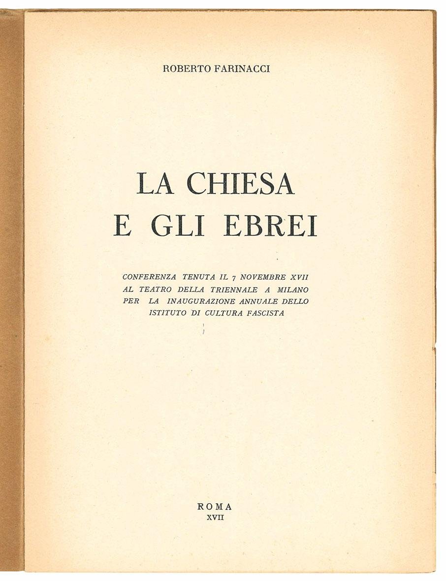 La chiesa e gli ebrei. Conferenza tenuta il 7 novembre XVII al teatro della Triennale a Milano per la inaugurazione annuale dello Istituto di Cultura Fascista.