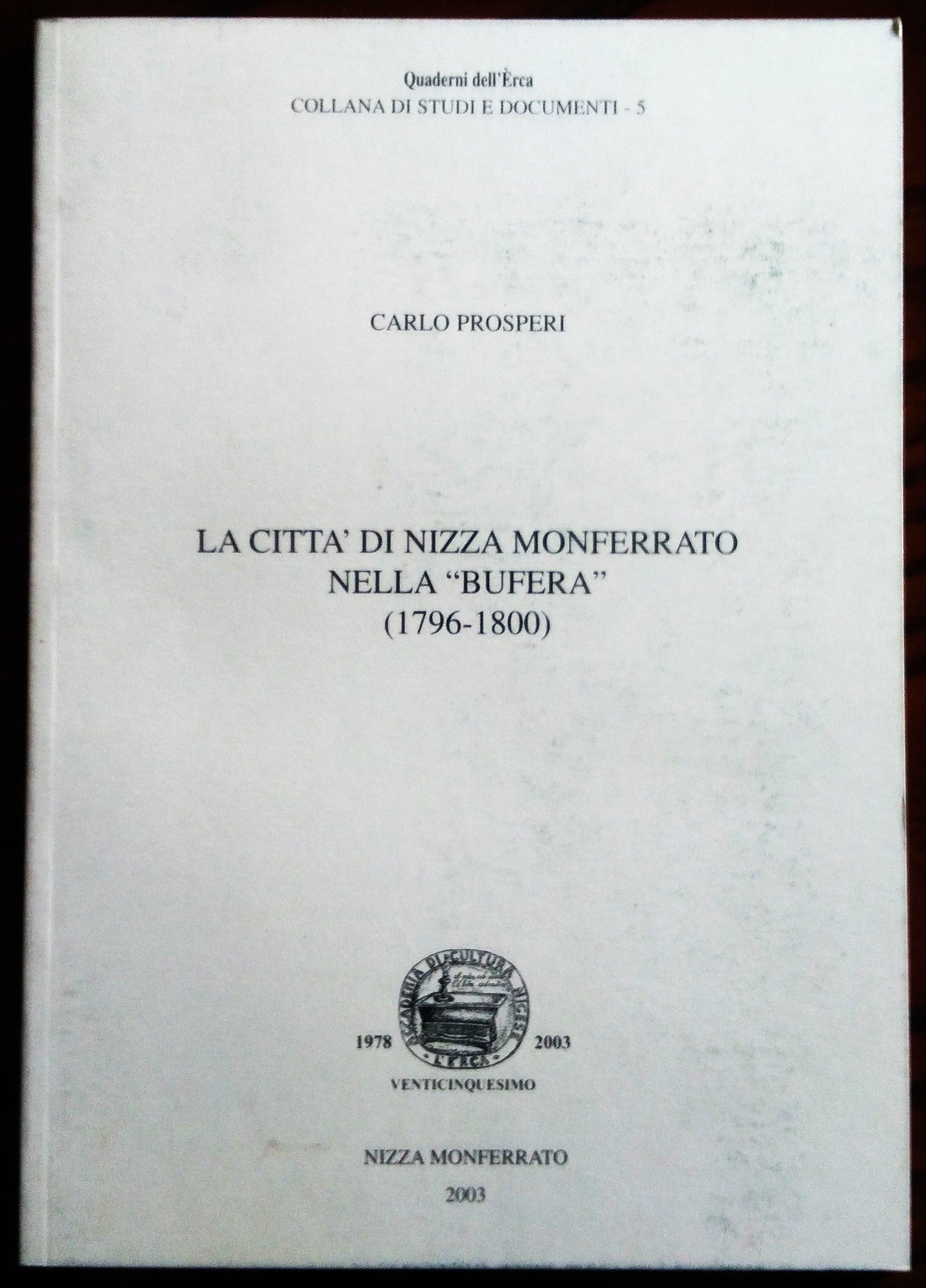 Nizza Monferrato, L'ERCA, 2003. 8°, pp. (8), 107,(1), 15 illustrazioni, brossura editoriale. Bella copia.