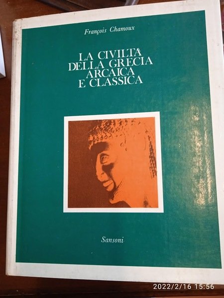PRIMA EDIZIONE, collana Le grandi civiltà diretta da Bloch, secondo volume della serie Testo di divulgazione diviso in tre sezioni, la prima spiega la cultura greca dalle origini fino al periodo geometrico, il secondo espone i fatti storici principali, il terzo sintetizza alcuni aspetti importanti della civiltà ellenica. Cartonato con sovraccoperta illustrata. Pp. 446. Qualche fioritura sul taglio.
